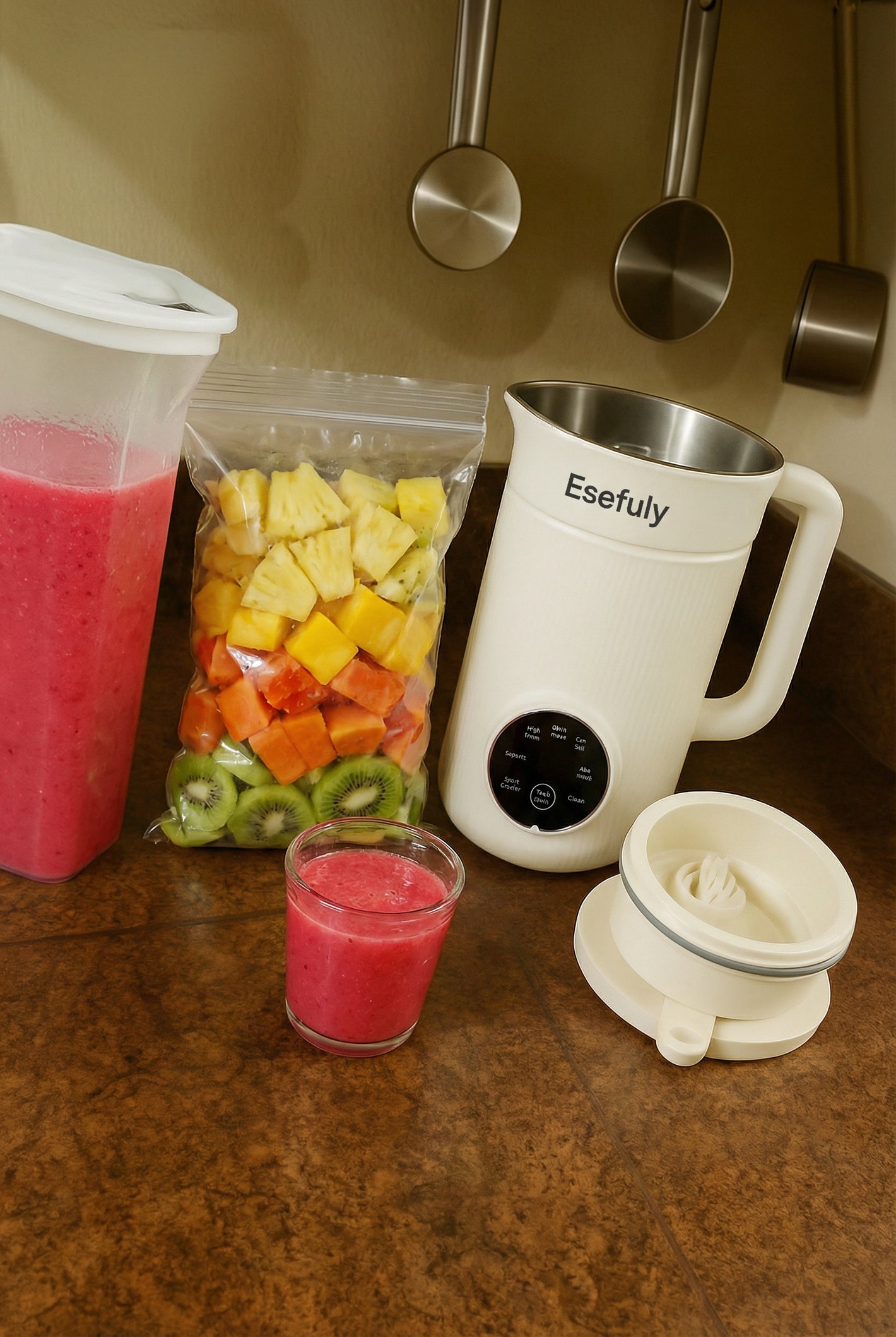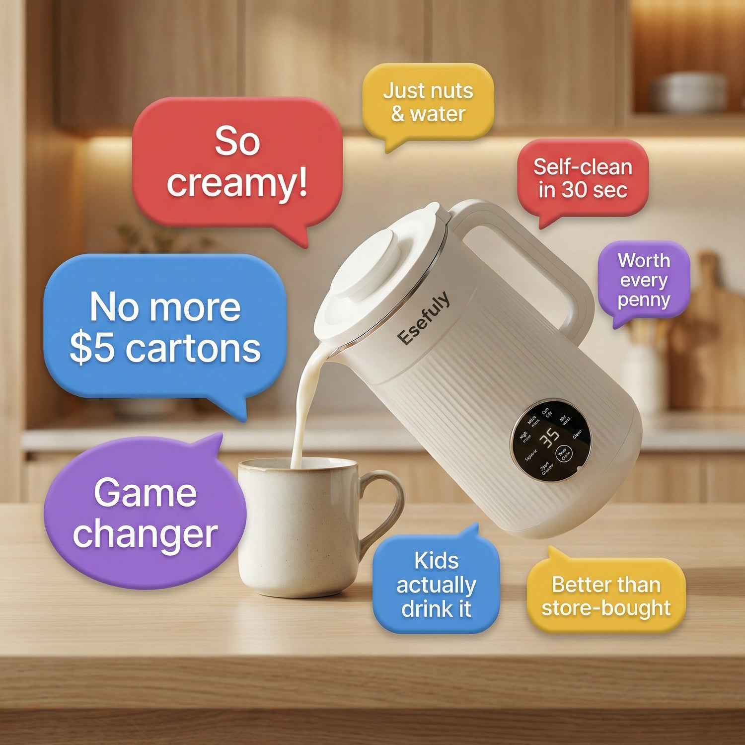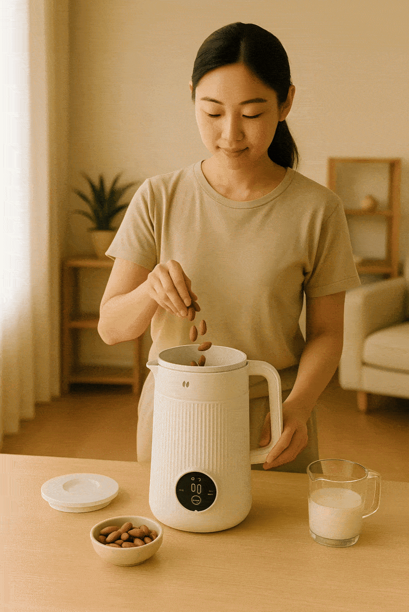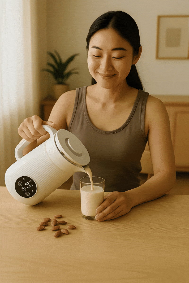 No soaking required for most recipes. Just add water and nuts, press start, and it’s ready in minutes.